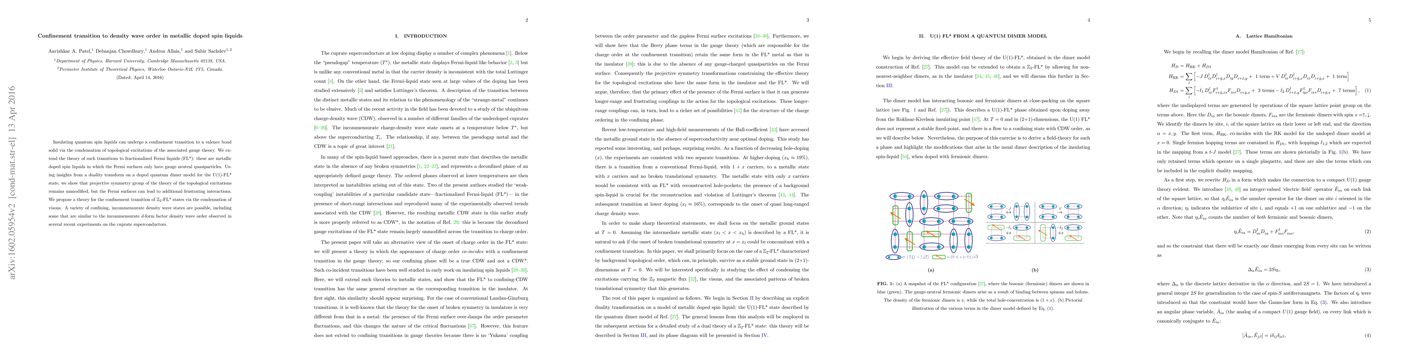 This research extends the theory of confinement transitions in quantum spin liquids to metallic doped spin liquids (FL*), proposing a theory for the confinement transition via vison condensation. It suggests various incommensurate density wave states, some resembling observed order in cuprate superconductors, using insights from a duality transform on a doped quantum dimer model for U(1)-FL* state.