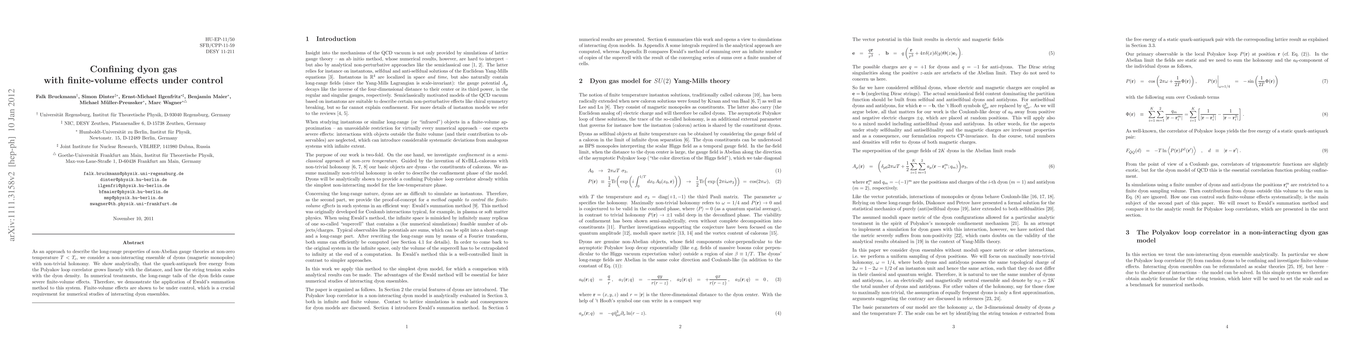 As an approach to describe the long-range properties of non-Abelian gauge theories at non-zero temperature T < T_c, we consider a non-interacting ensemble of dyons (magnetic monopoles) with non-trivial holonomy. We show analytically, that the quark-antiquark free energy from the Polyakov loop correlator grows linearly with the distance, and how the string tension scales with the dyon density. In numerical treatments, the long-range tails of the dyon fields cause severe finite-volume effects. Therefore, we demonstrate the application of Ewald's summation method to this system. Finite-volume effects are shown to be under control, which is a crucial requirement for numerical studies of interacting dyon ensembles.