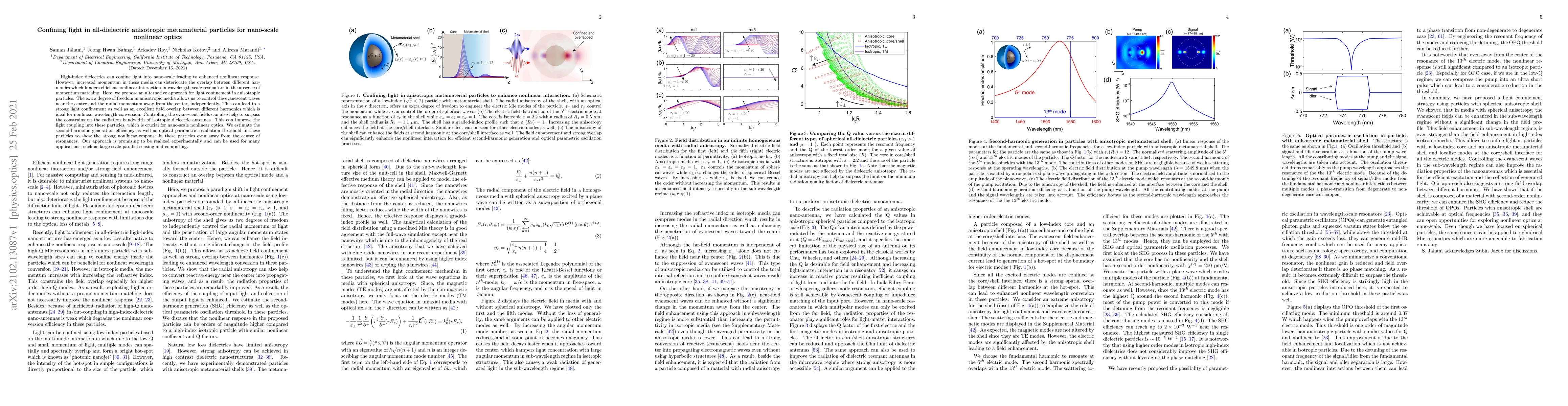 This paper proposes using anisotropic metamaterial particles to confine light for enhanced nonlinear optics, overcoming the limitations of isotropic dielectrics by independently controlling evanescent waves and radial momentum. This approach promises improved second-harmonic generation and optical parametric oscillation, with potential applications in nano-scale sensing and computing.
