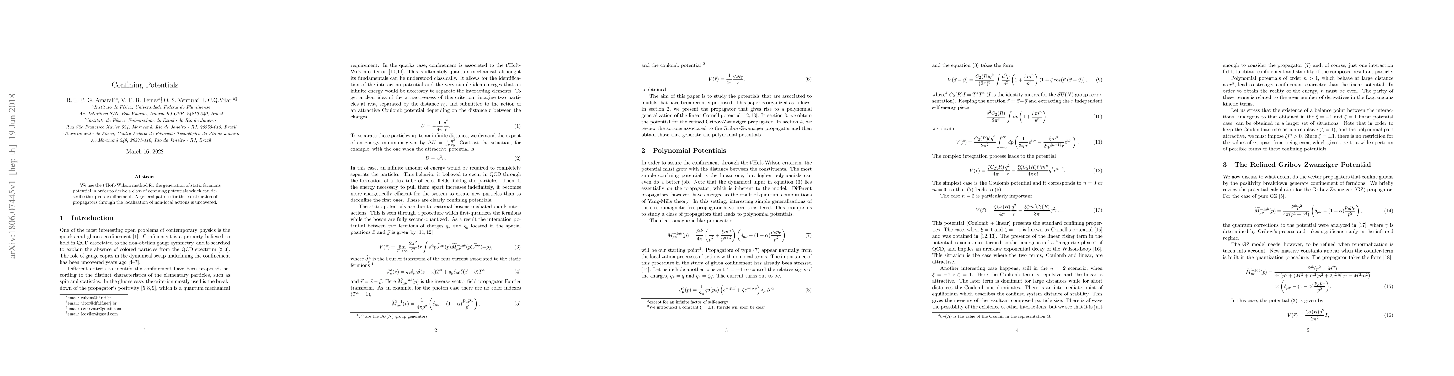 This paper employs the t'Hoft-Wilson method to generate static fermion potentials, leading to a class of confining potentials that can explain quark confinement. It reveals a general pattern for constructing propagators via the localization of non-local actions.