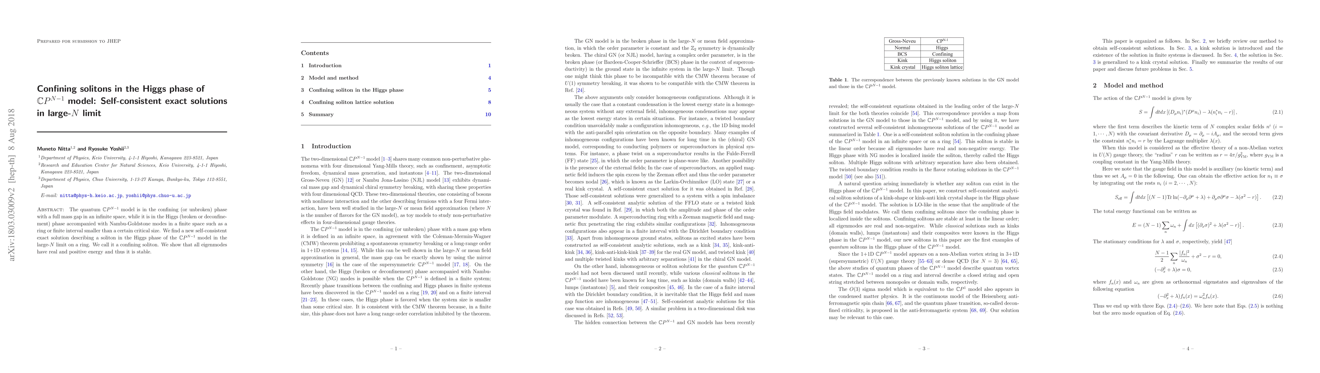 The paper presents a new self-consistent exact solution, called a 'confining soliton', for a soliton in the Higgs phase of the large-N limit of the quantum CP<sup>N-1</sup> model on a ring. This solution demonstrates that all eigenmodes have real and positive energy, ensuring the stability of the confining soliton.