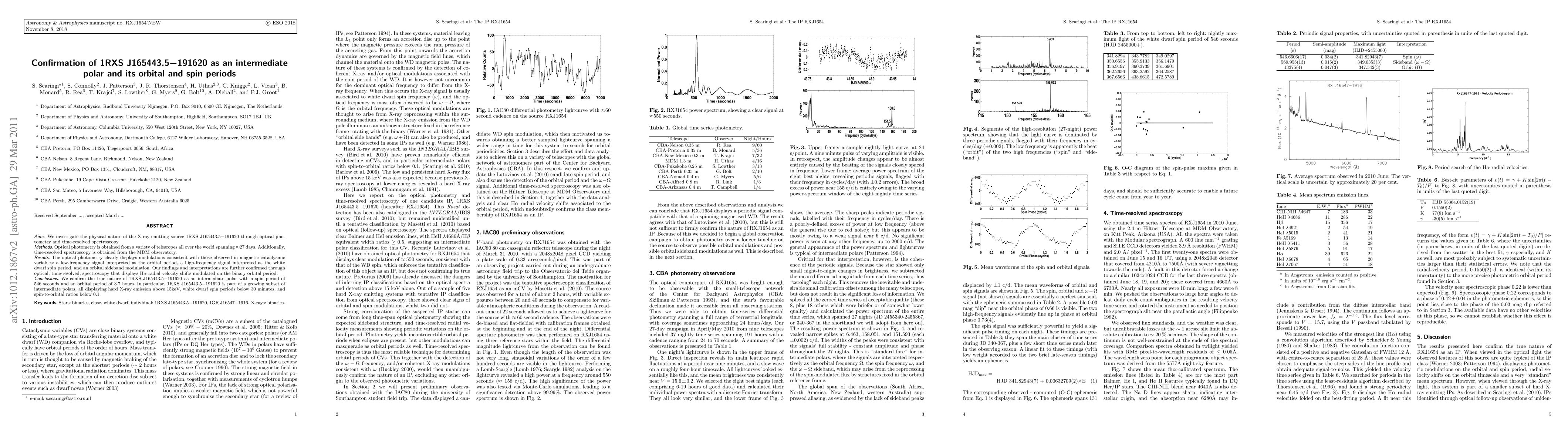 Researchers confirm 1RXS J165443.5-191620 as an intermediate polar with a spin period of 546 seconds and an orbital period of 3.7 hours, displaying characteristics unique to this subset of polars.