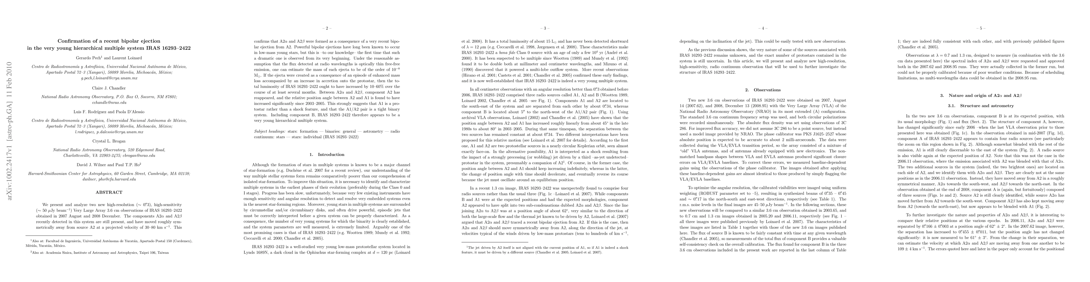 This study confirms a recent bipolar ejection in the young multiple star system IRAS 16293-2422, observing components A2alpha and A2beta moving away from source A2 at velocities of 30-80 km s-1, indicating a dramatic ejection event. The system is now recognized as a young hierarchical multiple system.