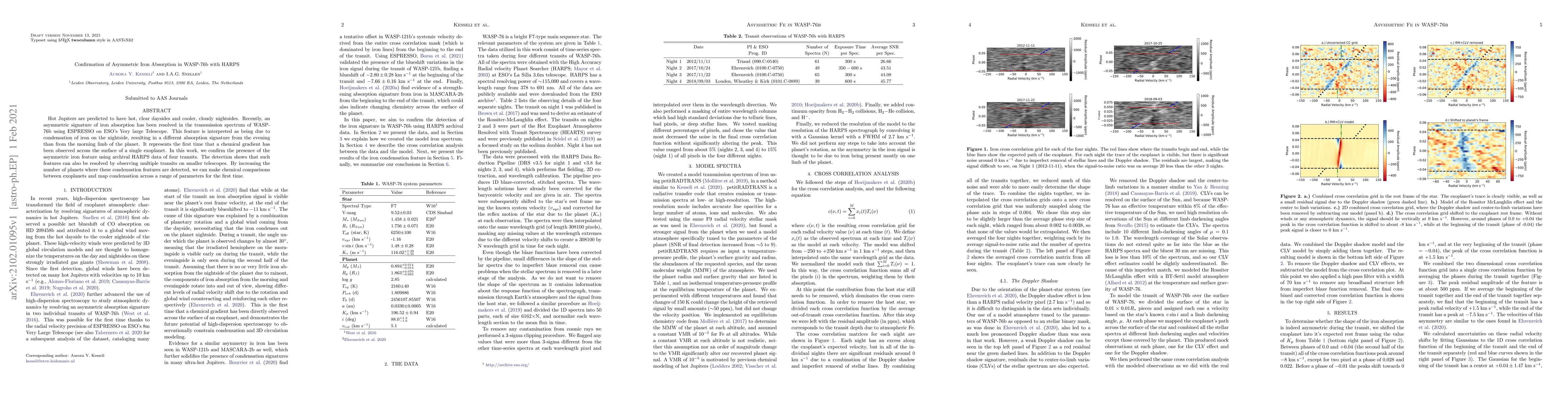 Hot Jupiters are predicted to have hot, clear daysides and cooler, cloudy nightsides. Recently, an asymmetric signature of iron absorption has been resolved in the transmission spectrum of WASP-76b using ESPRESSO on ESO's Very large Telescope. This feature is interpreted as being due to condensation of iron on the nightside, resulting in a different absorption signature from the evening than from the morning limb of the planet. It represents the first time that a chemical gradient has been observed across the surface of a single exoplanet. In this work, we confirm the presence of the asymmetric iron feature using archival HARPS data of four transits. The detection shows that such features can also be resolved by observing multiple transits on smaller telescopes. By increasing the number of planets where these condensation features are detected, we can make chemical comparisons between exoplanets and map condensation across a range of parameters for the first time.