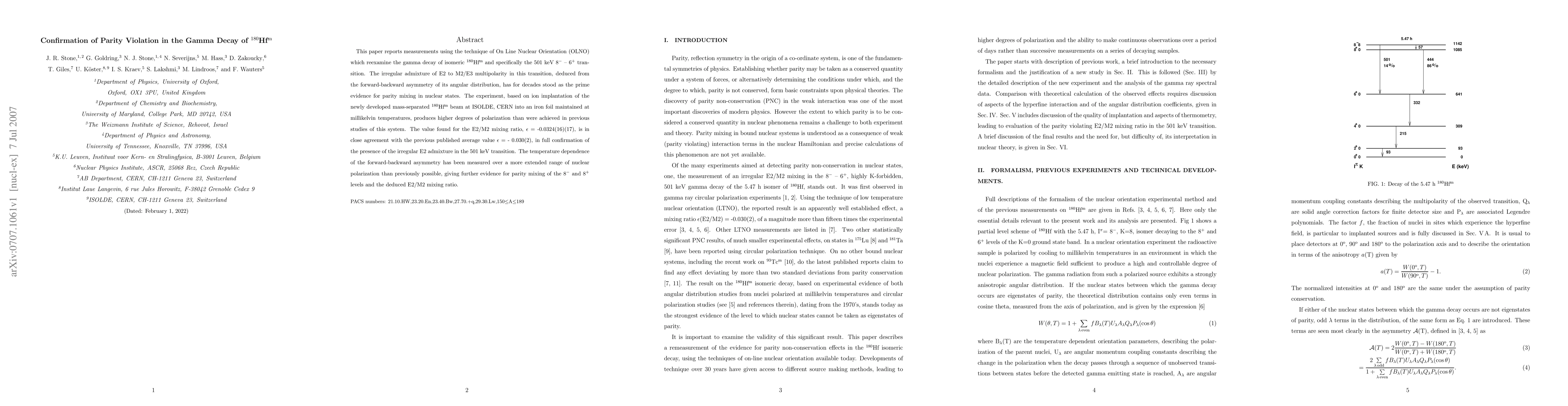 Researchers confirm parity violation in the gamma decay of $^{180}$Hf$^{m}$ through higher polarization measurements using On Line Nuclear Orientation (OLNO) technique, confirming previous evidence for parity mixing.