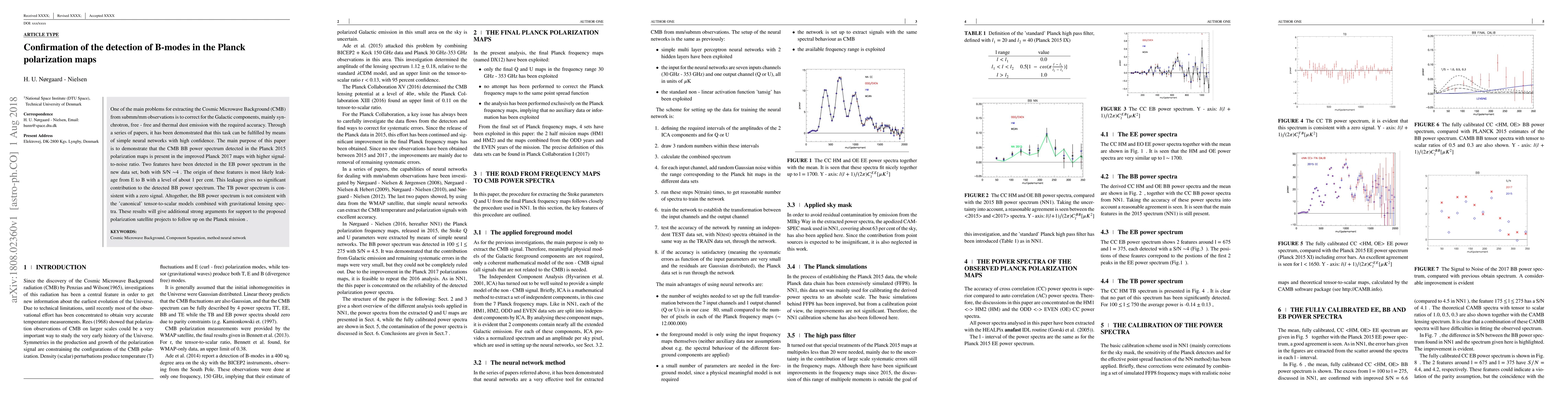 One of the main problems for extracting the Cosmic Microwave Background (CMB) from submm/mm observations is to correct for the Galactic components, mainly synchrotron, free - free and thermal dust emission with the required accuracy. Through a series of papers, it has been demonstrated that this task can be fulfilled by means of simple neural networks with high confidence. The main purpose of this paper is to demonstrate that the CMB BB power spectrum detected in the Planck 2015 polarization maps is present in the improved Planck 2017 maps with higher signal-to-noise ratio. Two features have been detected in the EB power spectrum in the new data set, both with S/N $\sim$4 . The origin of these features is most likely leakage from E to B with a level of about 1 per cent. This leakage gives no significant contribution to the detected BB power spectrum. The TB power spectrum is consistent with a zero signal. Altogether, the BB power spectrum is not consistent with the 'canonical' tensor-to-scalar models combined with gravitational lensing spectra. These results will give additional strong arguments for support to the proposed polarization satellite projects to follow up on the Planck mission .