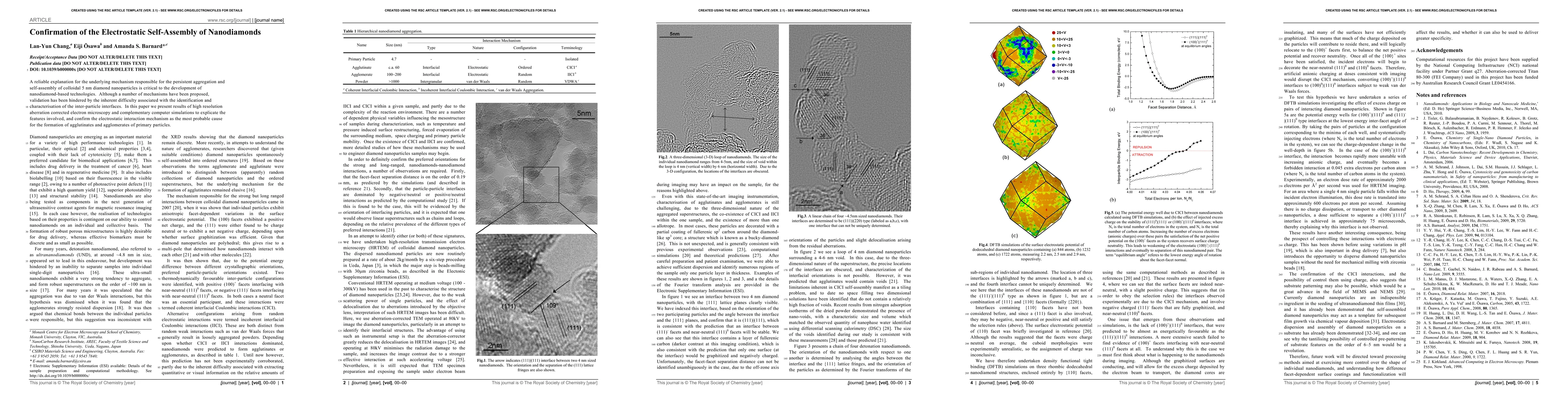 A reliable explanation for the underlying mechanism responsible for the persistent aggregation and self-assembly of colloidal 5 nm diamond nanoparticles is critical to the development of nanodiamond-based technologies. Although a number of mechanisms have been proposed, validation has been hindered by the inherent difficulty associated with the identification and characterisation of the inter-particle interfaces. In this paper we present results of high resolution aberration corrected electron microscopy and complementary computer simulations to explicate the features involved, and confirm the electrostatic interaction mechanism as the most probable cause for the formation of agglutinates and agglomerates of primary particles.