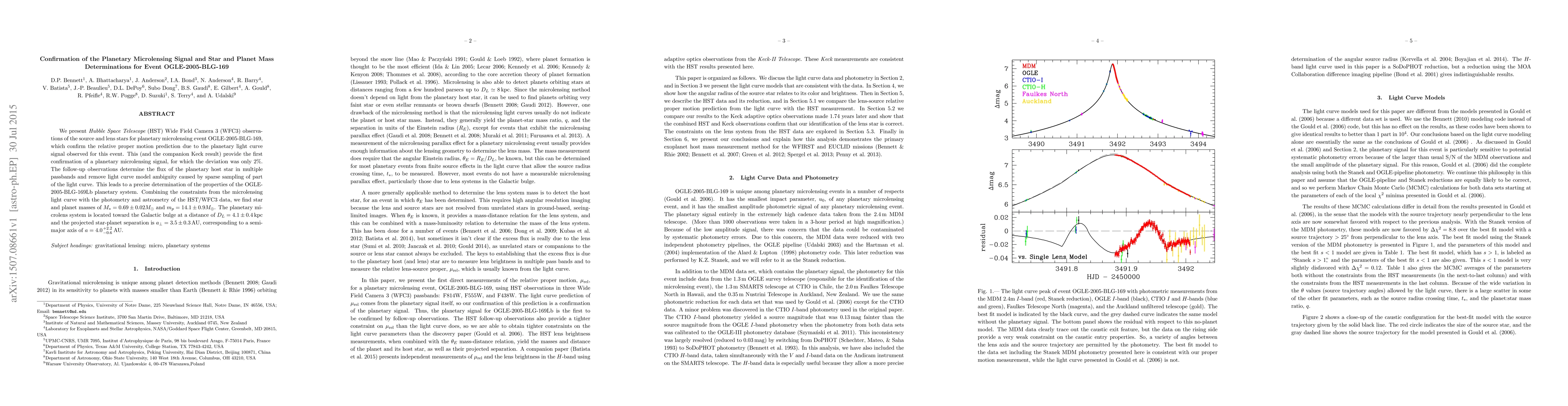 This paper confirms the planetary microlensing signal of event OGLE-2005-BLG-169 using HST/WFC3 observations, providing precise mass determinations for the star (M_* = 0.69 ± 0.02 M_solar) and planet (m_p = 14.1 ± 0.9 M_earth) in the system. The findings establish the first confirmed planetary microlensing signal with minimal deviation.