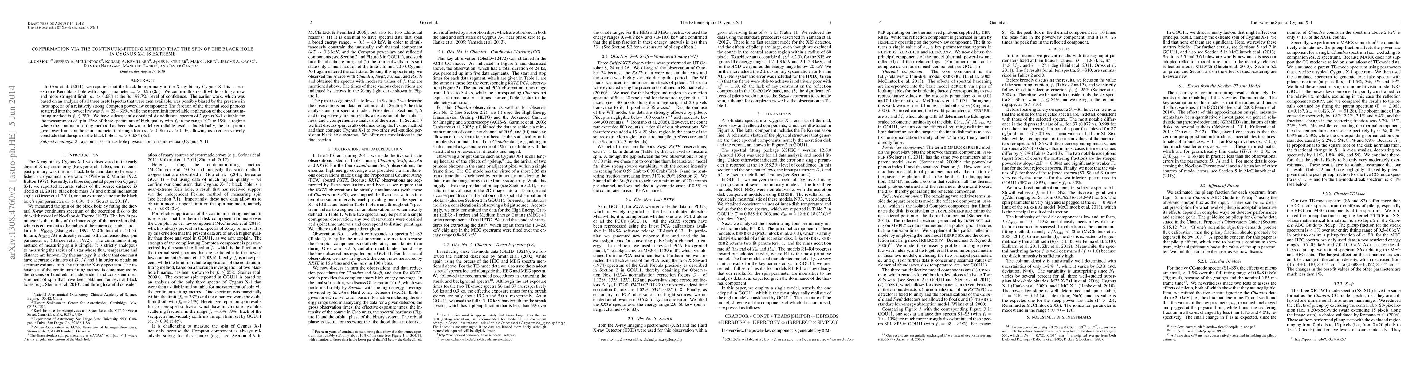 In Gou et al. (2011), we reported that the black hole primary in the X-ray binary Cygnus X-1 is a near-extreme Kerr black hole with a spin parameter a*>0.95(3{\sigma}). We confirm this result while setting a new and more stringent limit: a*>0.983 at the 3{\sigma}(99.7%) level of confidence. The earlier work, which was based on an analysis of all three useful spectra that were then available, was possibly biased by the presence in these spectra of a relatively strong Compton power-law component: The fraction of the thermal seed photons scattered into the power law was f_s=23-31%, while the upper limit for reliable application of the continuum-fitting method is f_s<25%. We have subsequently obtained six additional spectra of Cygnus X-1 suitable for the measurement of spin. Five of these spectra are of high quality with f_s in the range 10% to 19%, a regime where the continuum-fitting method has been shown to deliver reliable results. Individually, the six spectra give lower limits on the spin parameter that range from a*>0.95 to a*>0.98, allowing us to conservatively conclude that the spin of the black hole is a*>0.983 (3{\sigma}).