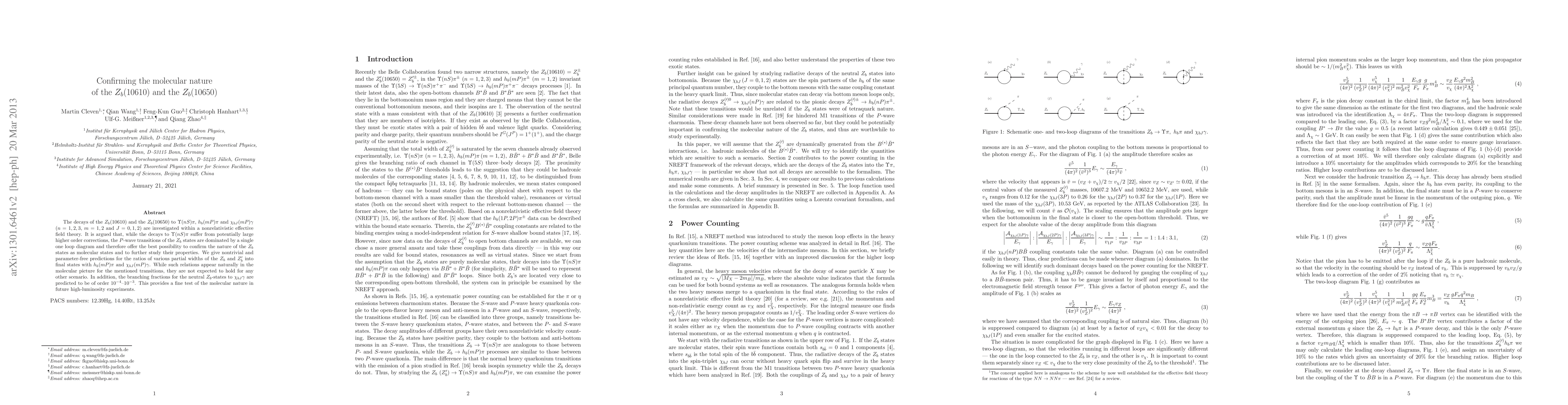 Researchers investigate the molecular nature of two baryon states, $Z_b(10610)$ and $Z_b(10650)$, using nonrelativistic effective field theory to predict their decay patterns and test for a molecular origin.
