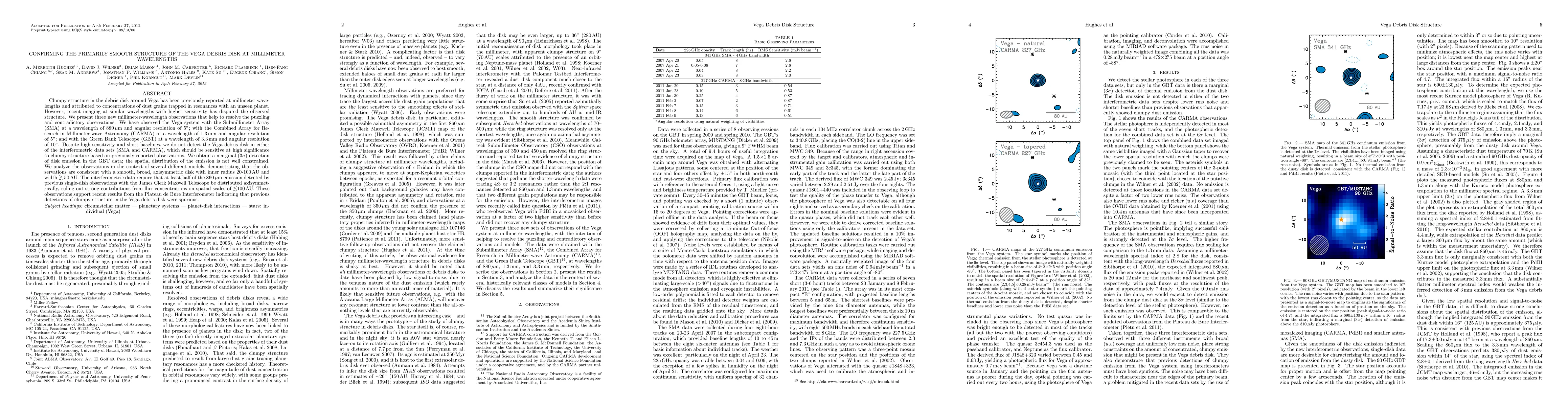 This research confirms the smooth structure of the Vega debris disk at millimeter wavelengths, finding no evidence for previously reported clumpy structures. New observations with high-resolution interferometry suggest the disk is broad and axisymmetric, consistent with earlier results ruling out significant flux concentrations.