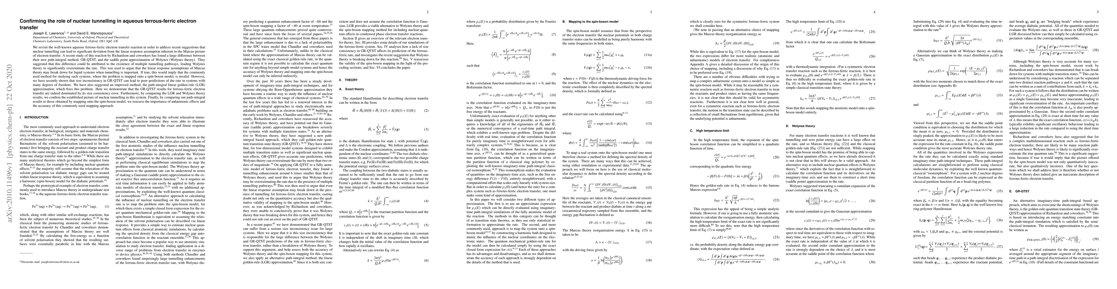 This paper confirms the role of nuclear tunnelling in the aqueous ferrous-ferric electron transfer reaction, refuting claims that it deviates from Marcus theory due to multiple tunnelling pathways. The authors show that discrepancies in previous studies arise from size consistency errors in the GR-QTST method, validating the established nuclear tunnelling model when using the improved LGR approximation.