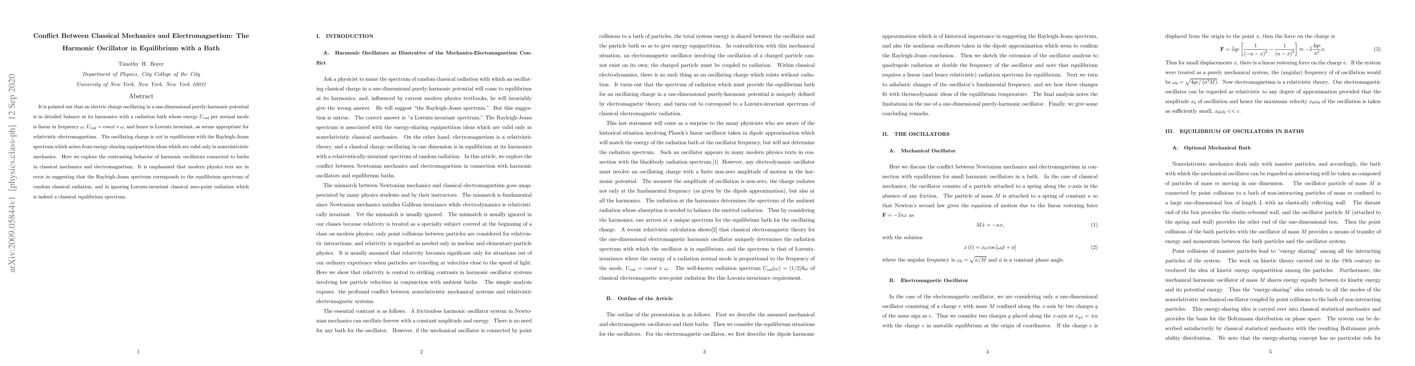 This paper discusses the discrepancy between classical mechanics and electromagnetism regarding the equilibrium of a harmonic oscillator with a radiation bath, highlighting that the oscillator is in balance with a Lorentz-invariant radiation spectrum rather than the Rayleigh-Jeans spectrum, which is incorrect for relativistic contexts. It corrects misconceptions in modern physics texts.