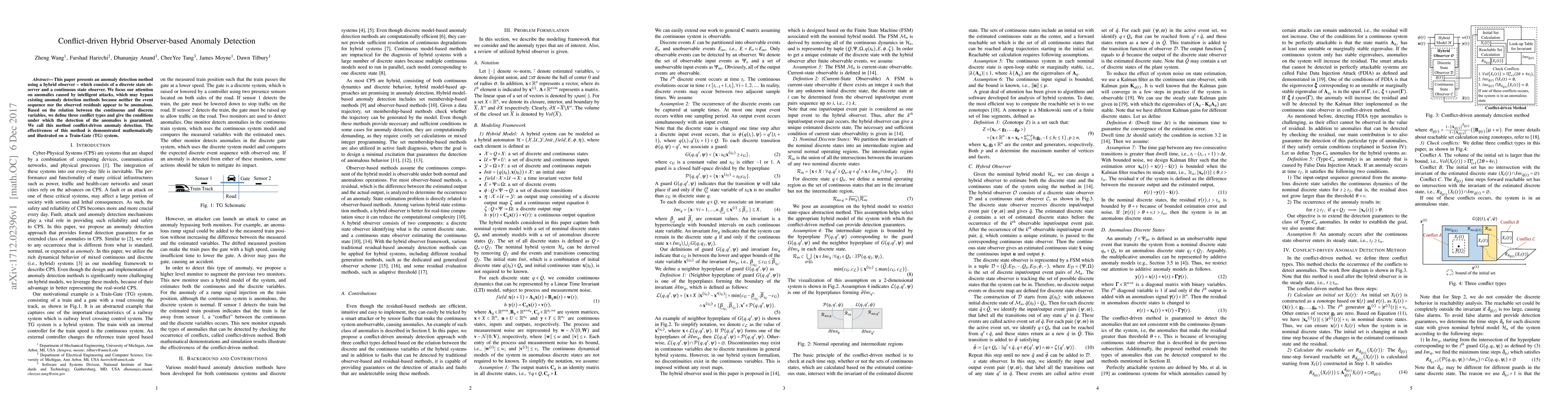 This paper presents an anomaly detection method using a hybrid observer -- which consists of a discrete state observer and a continuous state observer. We focus our attention on anomalies caused by intelligent attacks, which may bypass existing anomaly detection methods because neither the event sequence nor the observed residuals appear to be anomalous. Based on the relation between the continuous and discrete variables, we define three conflict types and give the conditions under which the detection of the anomalies is guaranteed. We call this method conflict-driven anomaly detection. The effectiveness of this method is demonstrated mathematically and illustrated on a Train-Gate (TG) system.