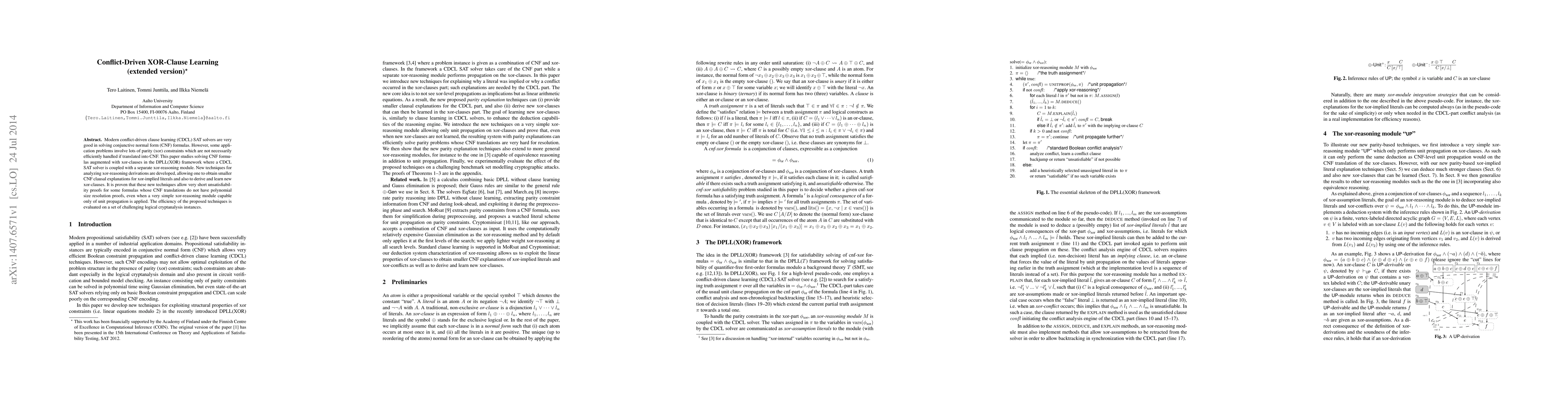 This paper proposes an enhanced CDCL SAT solver framework that integrates a separate xor-reasoning module to handle XOR constraints more efficiently. It develops new techniques for deriving and learning xor-clauses, resulting in shorter unsatisfiability proofs for certain CNF formulas, especially those with complex XOR constraints.