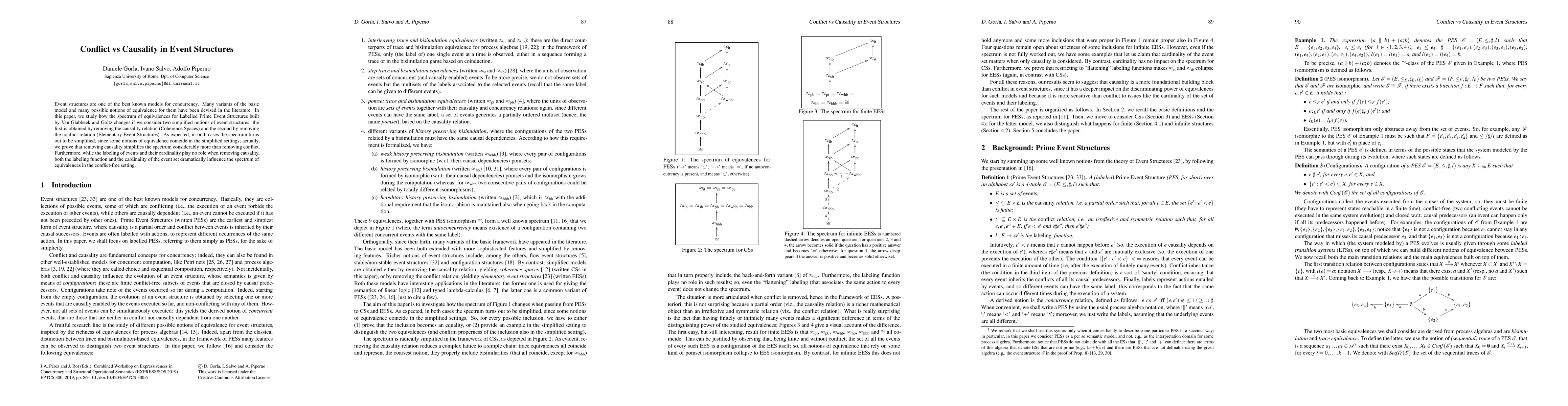 This paper examines how removing either the causality or conflict relations from Labelled Prime Event Structures affects the spectrum of equivalences. It finds that removing causality simplifies the equivalence spectrum more than removing conflict, with causality removal having no dependence on event labeling or cardinality, while conflict removal is significantly influenced by these factors.