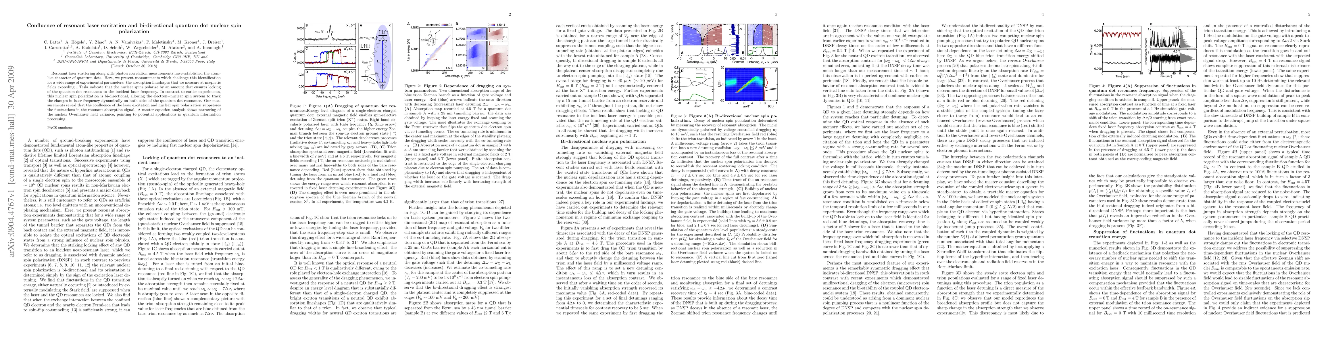 This research demonstrates that resonant laser excitation combined with bi-directional nuclear spin polarization in quantum dots leads to dynamic tracking of laser frequency changes, suppressing resonant absorption signal fluctuations. This phenomenon could enhance quantum information processing applications.