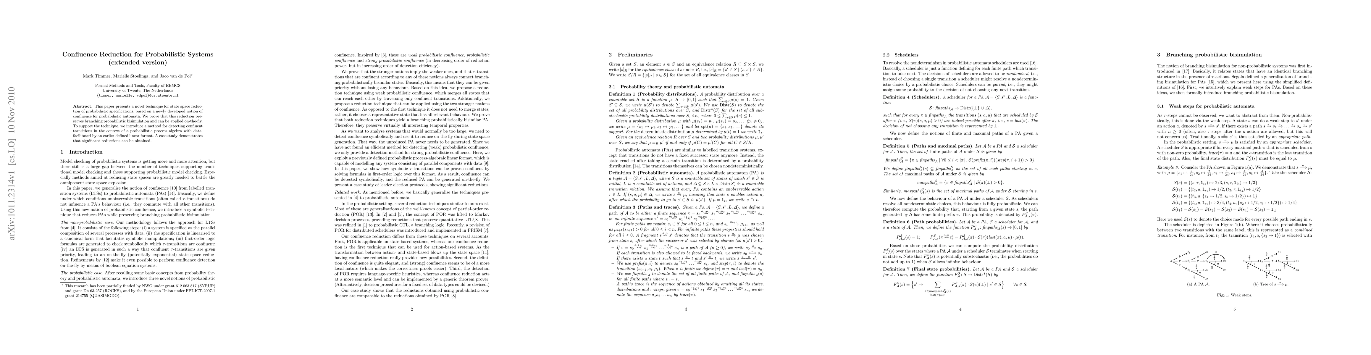 A new technique for reducing state spaces in probabilistic systems is presented, preserving key properties like branching probabilistic bisimulation and allowing on-the-fly application. This approach can lead to significant reductions in computational complexity.
