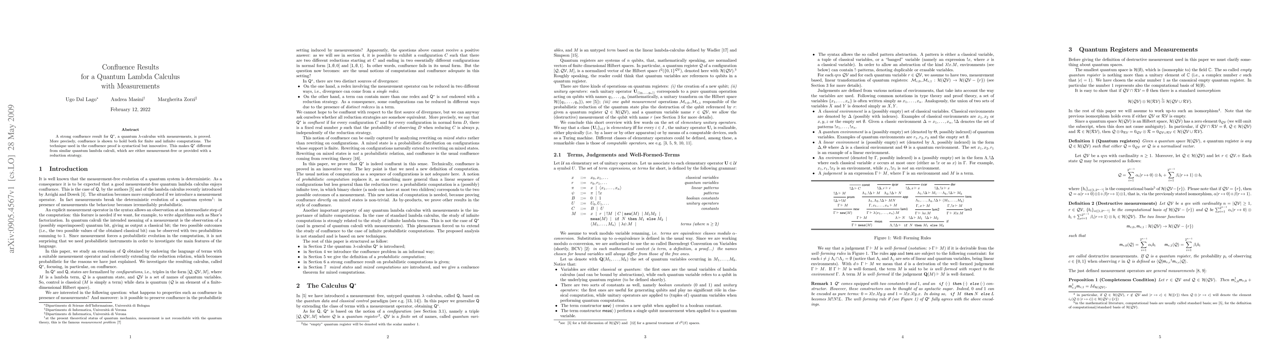A strong confluence result for Q*, a quantum lambda-calculus with measurements, is proved. More precisely, confluence is shown to hold both for finite and infinite computations. The technique used in the confluence proof is syntactical but innovative. This makes Q* different from similar quantum lambda calculi, which are either measurement-free or provided with a reduction strategy.