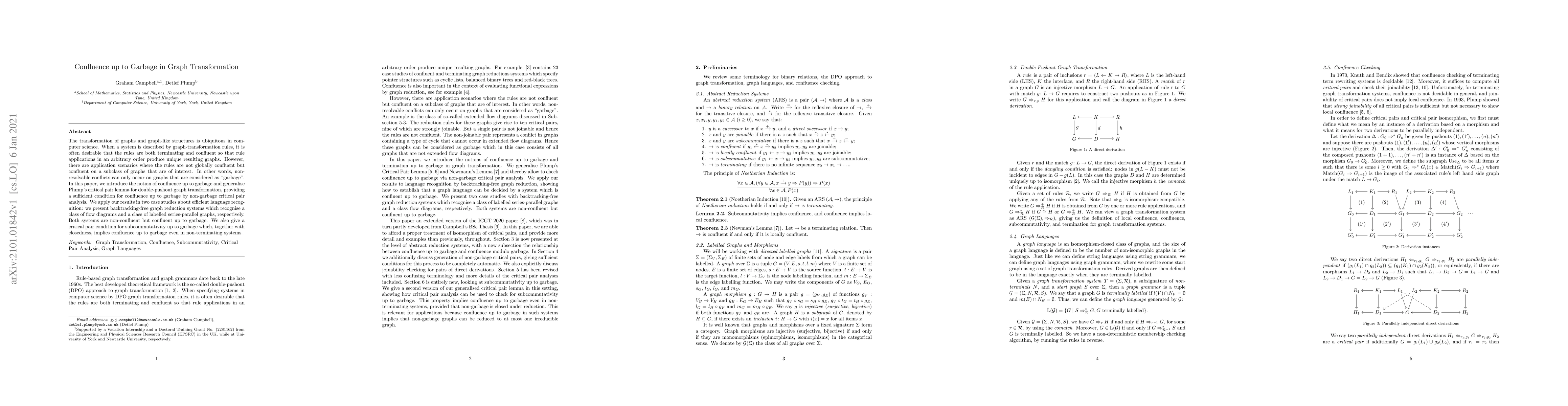 This paper introduces the concept of "confluence up to garbage" in graph transformation, where rules are confluent except on "garbage" graphs. It generalizes Plump's critical pair lemma for double-pushout graph transformation and provides a condition for confluence up to garbage, illustrated through backtracking-free graph reduction systems recognizing flow diagrams and labelled series-parallel graphs.