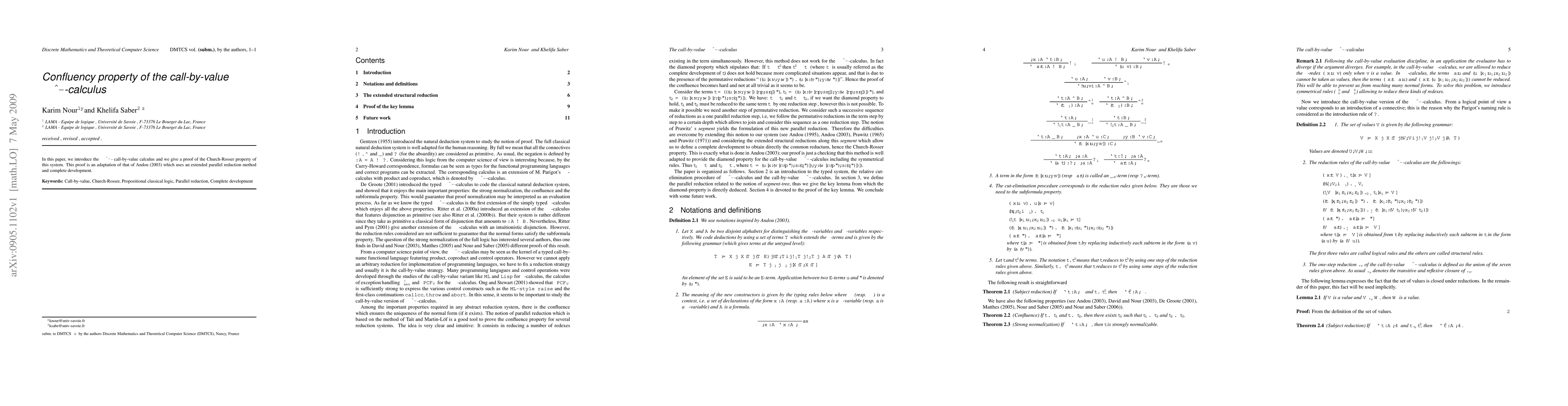 In this paper, we introduce the $\lambda\mu^{\wedge \vee}$- call-by-value calculus and we give a proof of the Church-Rosser property of this system. This proof is an adaptation of that of Andou which uses an extended parallel reduction method and complete development.