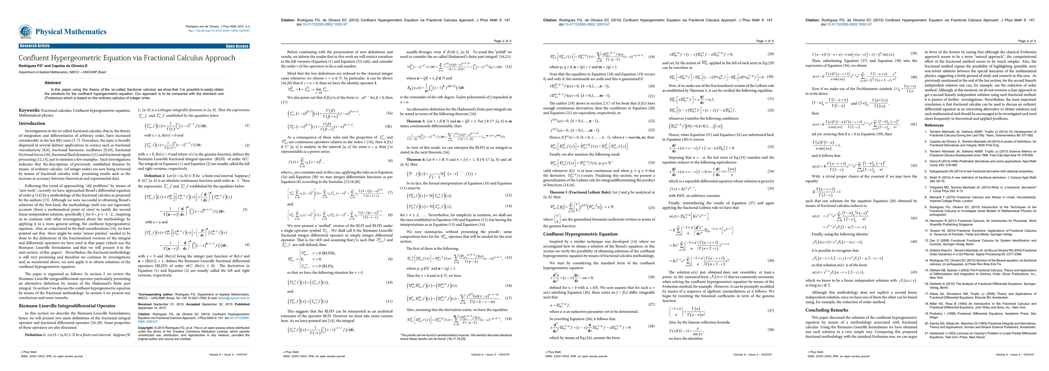 This paper demonstrates a novel fractional calculus approach to solving the confluent hypergeometric equation, offering a simpler method compared to the traditional Frobenius method based on integer-order calculus.