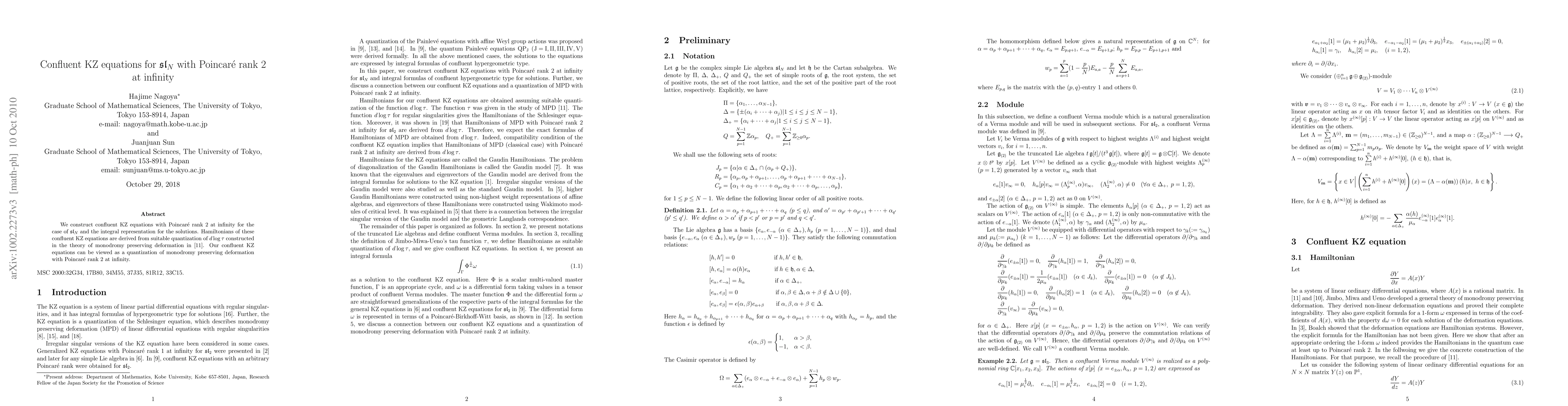 The paper presents the construction of confluent Knizhnik-Zamolodchikov (KZ) equations with Poincare rank 2 at infinity for sl_N, along with their integral representation solutions. These equations are quantized forms of monodromy preserving deformations with specified Poincare rank at infinity, derived from suitable quantization of dlog tau, as per Jimbo, Miwa, and Ueno's theory.