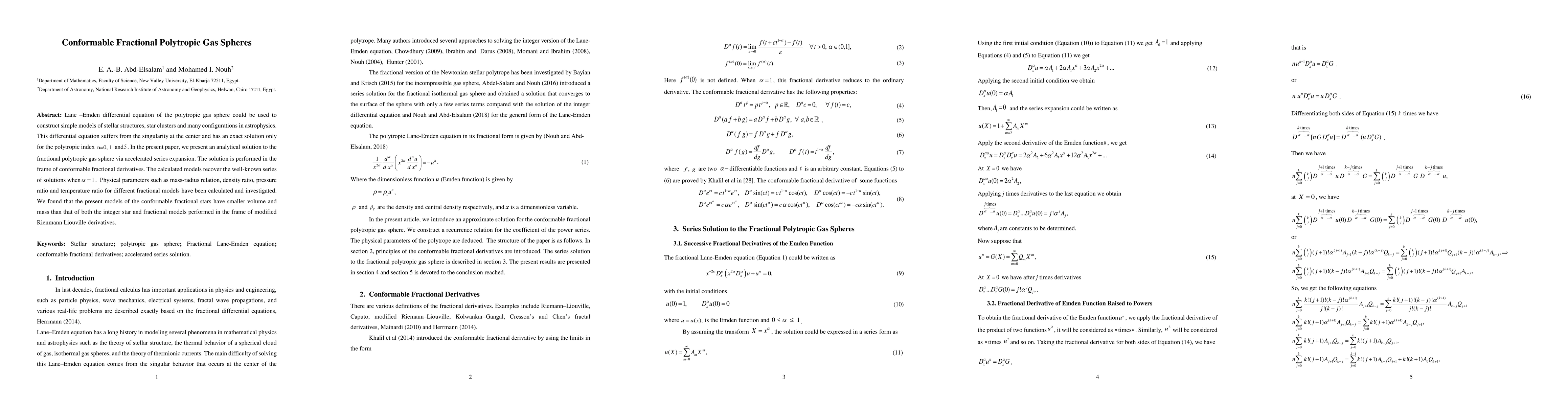 This paper presents an analytical solution for conformable fractional polytropic gas spheres using accelerated series expansion, addressing the singularity issue of the Lane Emden equation. The models show smaller volume and mass compared to integer and other fractional models, with physical parameters like mass-radius and density ratios investigated.