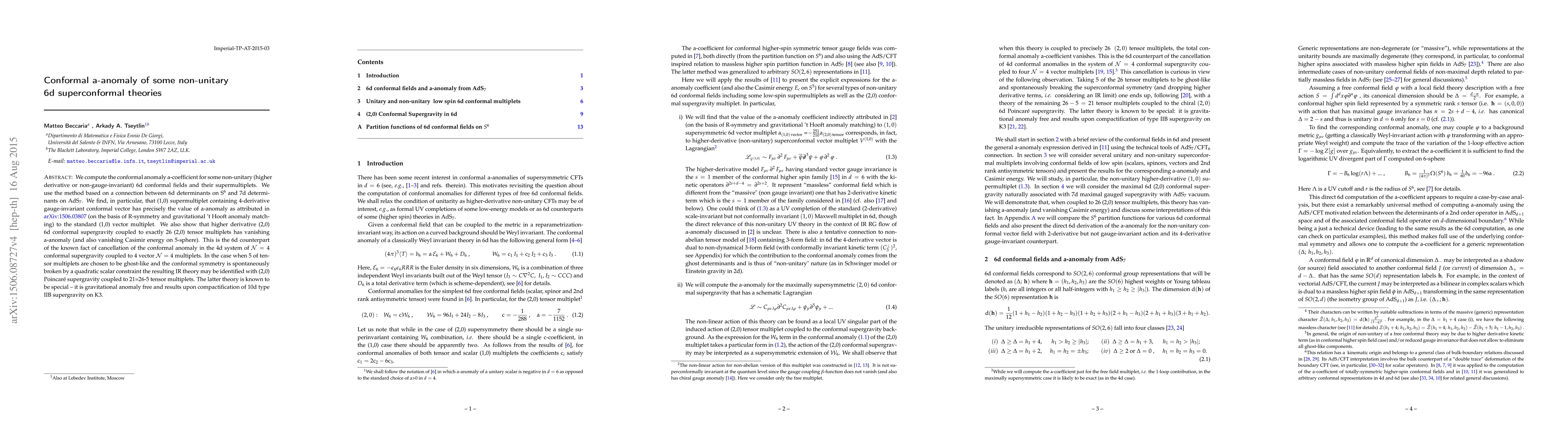This paper calculates the conformal anomaly a-coefficient for non-unitary 6d conformal theories, finding that certain (1,0) supermultiplets have matching a-anomaly values as those in standard vector multiplets. It also demonstrates that higher derivative (2,0) conformal supergravity coupled to 26 tensor multiplets cancels its a-anomaly, analogous to the 4d N=4 system.