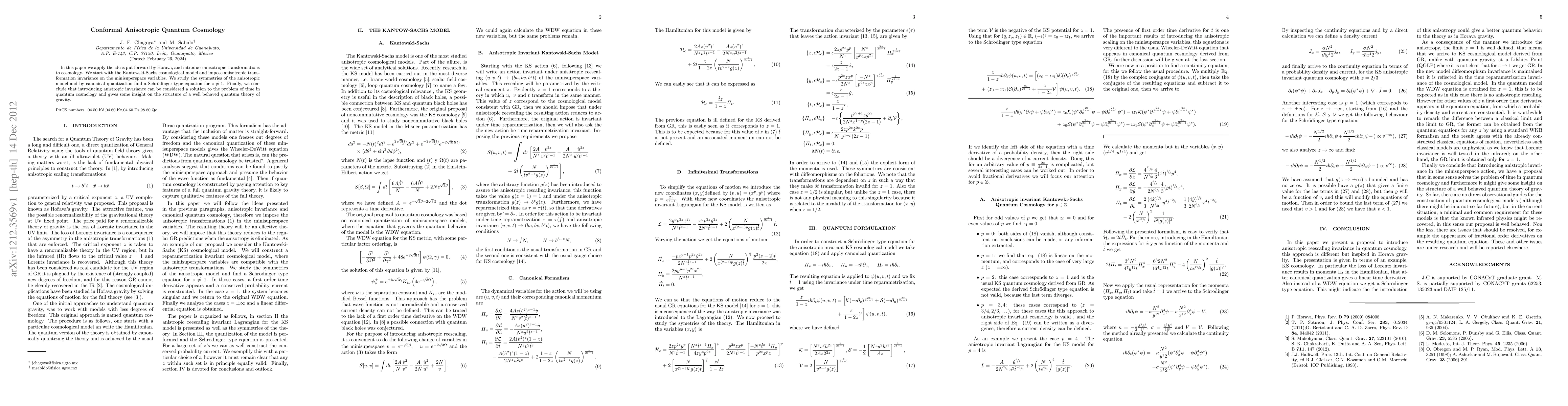 This paper explores anisotropic transformations in quantum cosmology using the Kantowski-Sachs model, finding a Schrödinger-type equation for $z\ne 1$. It concludes that anisotropic invariance offers a solution to the problem of time in quantum cosmology and provides insights into a well-behaved quantum theory of gravity.