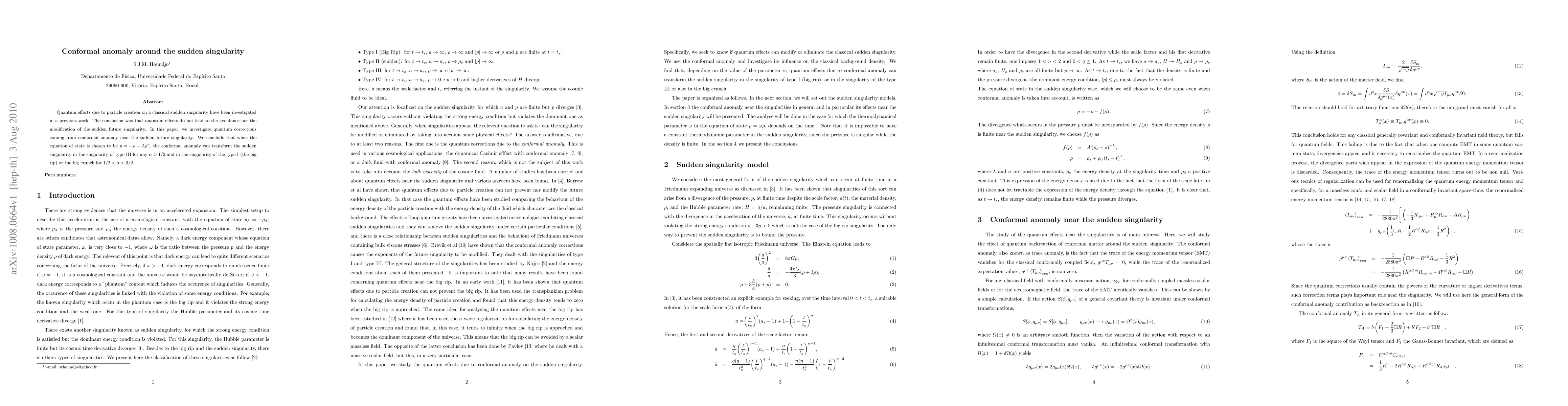 This paper examines the quantum conformal anomaly near a sudden future singularity, finding that it can transform the singularity type depending on the equation of state $p=-\rho-A\rho^\alpha$, leading to either type III singularities for $\alpha> 1/2$ or type I (big rip or big crunch) for $1/2<\alpha<3/2$.
