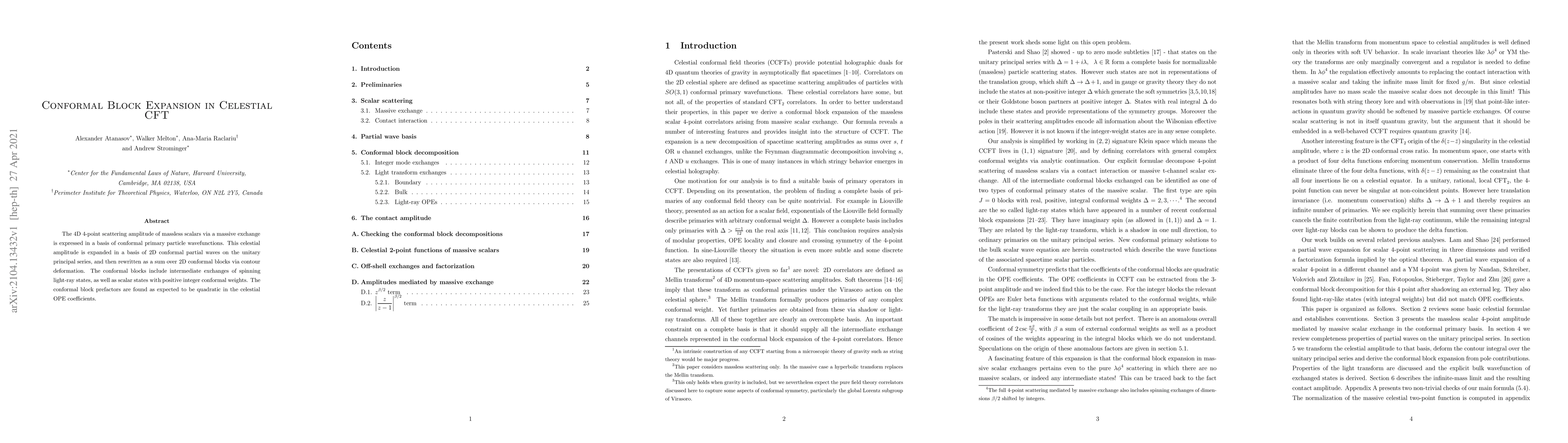 The paper expresses the 4D 4-point scattering amplitude for massless scalars through a massive exchange using conformal primary wavefunctions, and expands it into 2D conformal partial waves, subsequently rewriting it as a sum over conformal blocks involving spinning light-ray and scalar states. The prefactors of these conformal blocks are shown to be quadratic in the celestial OPE coefficients.