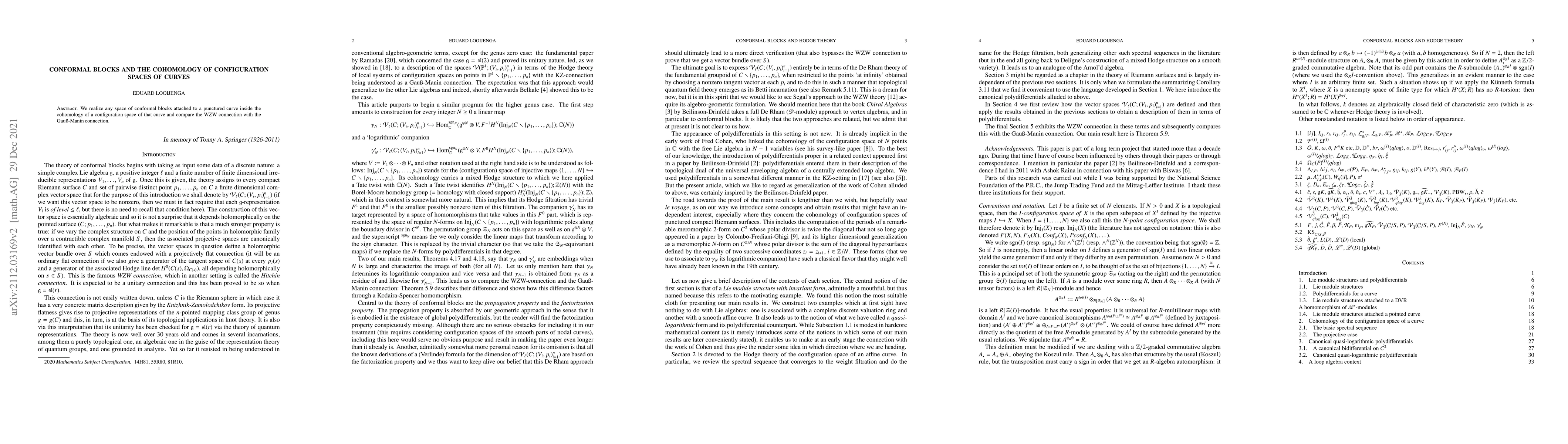 Summary: This paper explores the realization of conformal blocks on a punctured curve within the cohomology of its configuration space, and investigates the relationship between the WZW connection and the Gauss-Manin connection.