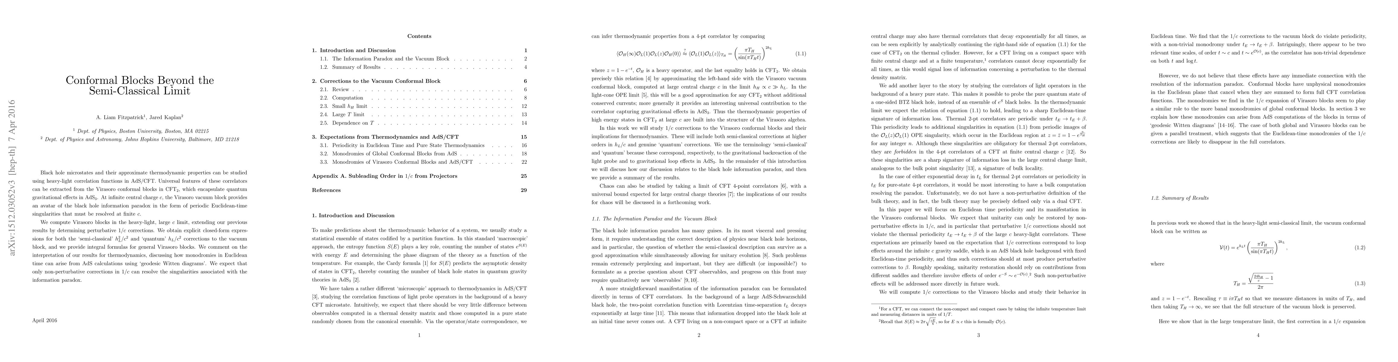 Black hole microstates and their approximate thermodynamic properties can be studied using heavy-light correlation functions in AdS/CFT. Universal features of these correlators can be extracted from the Virasoro conformal blocks in CFT2, which encapsulate quantum gravitational effects in AdS3. At infinite central charge c, the Virasoro vacuum block provides an avatar of the black hole information paradox in the form of periodic Euclidean-time singularities that must be resolved at finite c. We compute Virasoro blocks in the heavy-light, large c limit, extending our previous results by determining perturbative 1/c corrections. We obtain explicit closed-form expressions for both the `semi-classical' $h_L^2 / c^2$ and `quantum' $h_L / c^2$ corrections to the vacuum block, and we provide integral formulas for general Virasoro blocks. We comment on the interpretation of our results for thermodynamics, discussing how monodromies in Euclidean time can arise from AdS calculations using `geodesic Witten diagrams'. We expect that only non-perturbative corrections in 1/c can resolve the singularities associated with the information paradox.