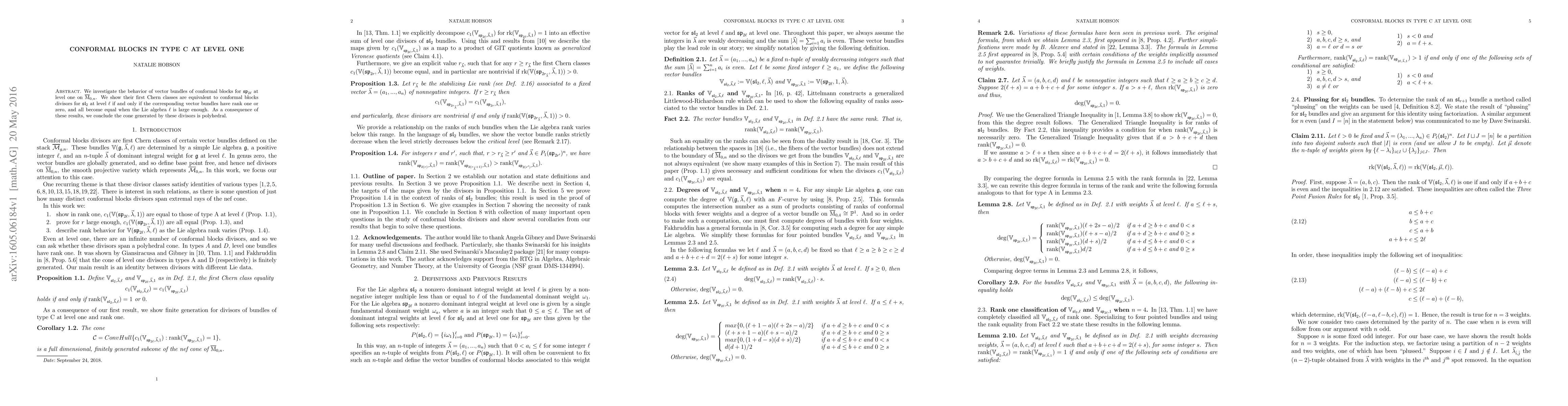 This paper examines vector bundles of conformal blocks for $sp_{2\ell}$ at level one on $\bar{M}_{0,n}$, showing their first Chern classes match conformal blocks divisors for $sl_2$ when the rank is one or zero, and they all converge for large $\ell$. The study concludes that the cone generated by these divisors is polyhedral.