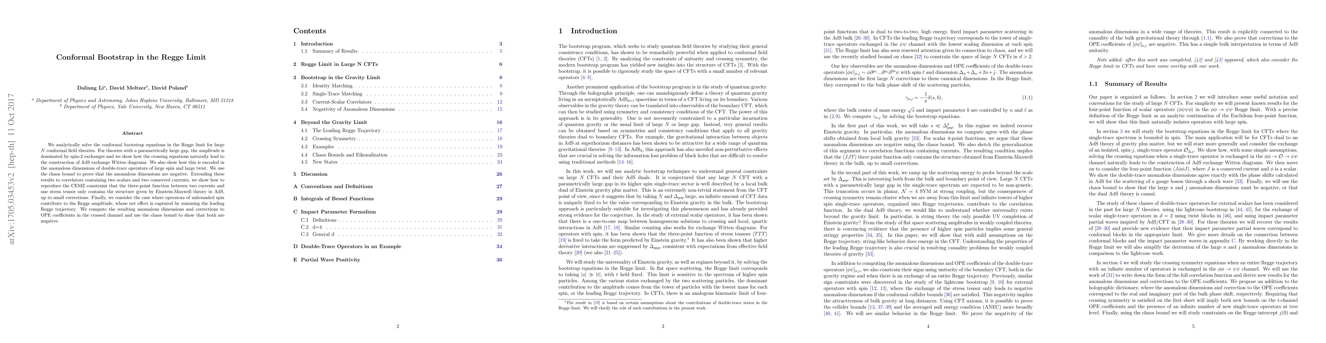 This paper analytically solves conformal bootstrap equations in the Regge limit for large N conformal field theories, showing that large spin-2 exchanges dominate the amplitude. It connects these findings to AdS exchange Witten diagrams and the anomalous dimensions of large spin double-trace operators, proving their negativity via the chaos bound.
