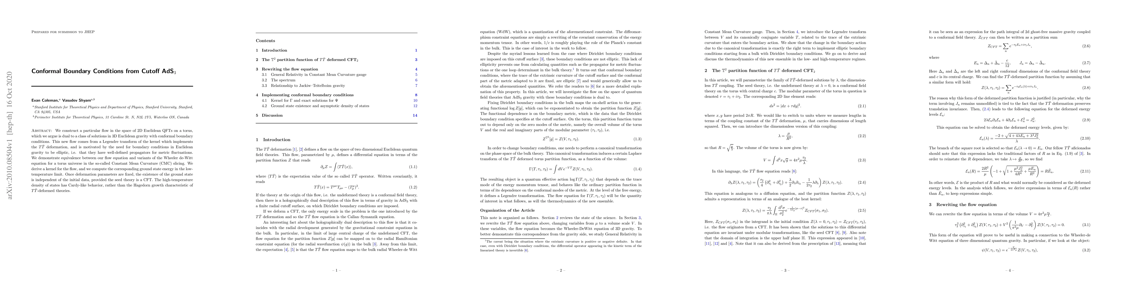 We construct a particular flow in the space of 2D Euclidean QFTs on a torus, which we argue is dual to a class of solutions in 3D Euclidean gravity with conformal boundary conditions. This new flow comes from a Legendre transform of the kernel which implements the $T\bar{T}$ deformation, and is motivated by the need for boundary conditions in Euclidean gravity to be elliptic, i.e. that they have well-defined propagators for metric fluctuations. We demonstrate equivalence between our flow equation and variants of the Wheeler de-Witt equation for a torus universe in the so-called Constant Mean Curvature (CMC) slicing. We derive a kernel for the flow, and we compute the corresponding ground state energy in the low-temperature limit. Once deformation parameters are fixed, the existence of the ground state is independent of the initial data, provided the seed theory is a CFT. The high-temperature density of states has Cardy-like behavior, rather than the Hagedorn growth characteristic of $T\bar{T}$-deformed theories.