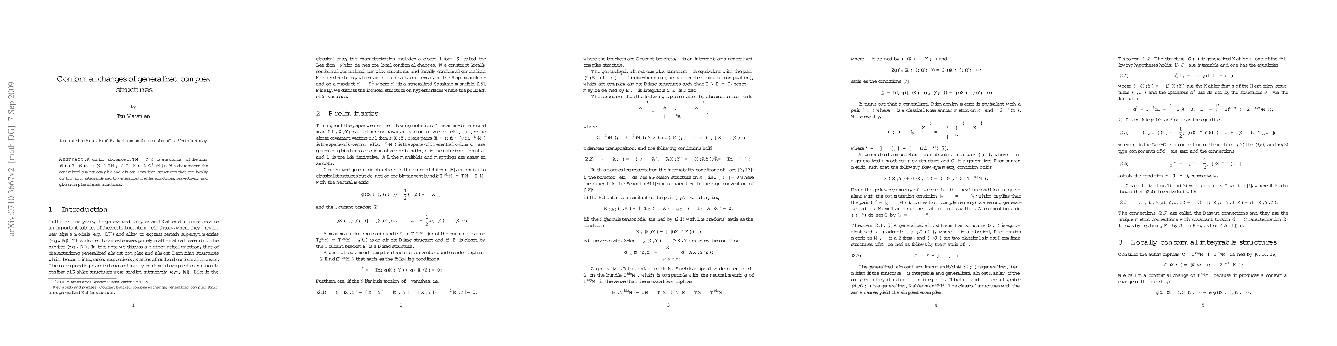 A conformal change of $TM\oplus T^*M$ is a morphism of the form $(X,\alpha)\mapsto(X,e^\tau\alpha)$ $(X\in TM,\alpha\in T^*M,\tau\in C^\infty(M))$. We characterize the generalized almost complex and almost Hermitian structures that are locally conformal to integrable and to generalized K\"ahler structures, respectively, and give examples of such structures.