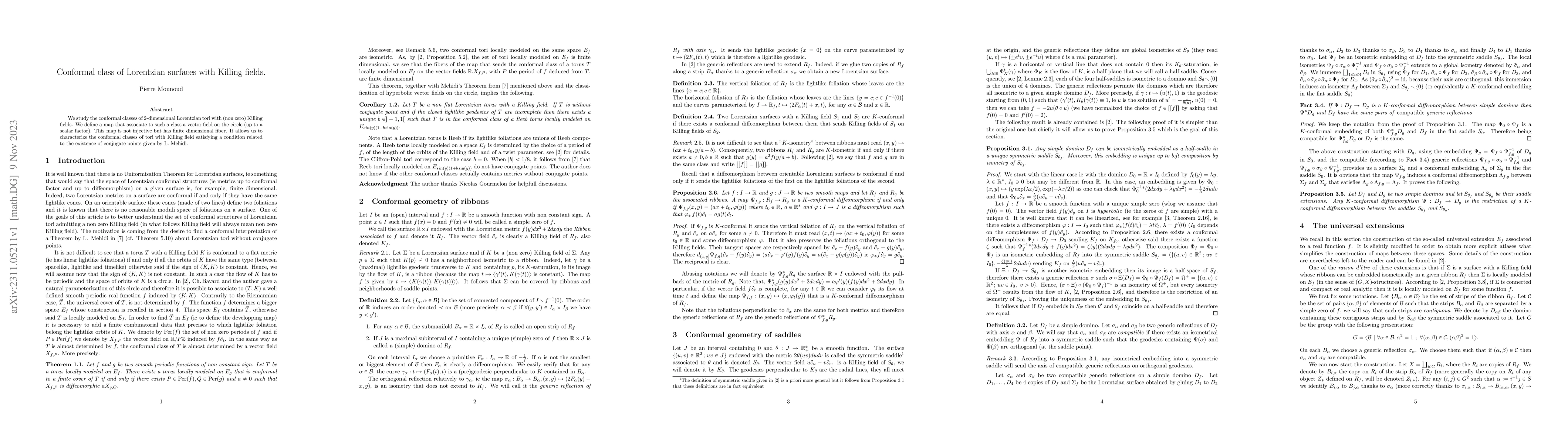 This paper investigates the conformal classes of 2-dimensional Lorentzian tori possessing non-zero Killing fields, defining a map linking these classes to vector fields on the circle, and characterizing those with specific conditions related to the presence of conjugate points.