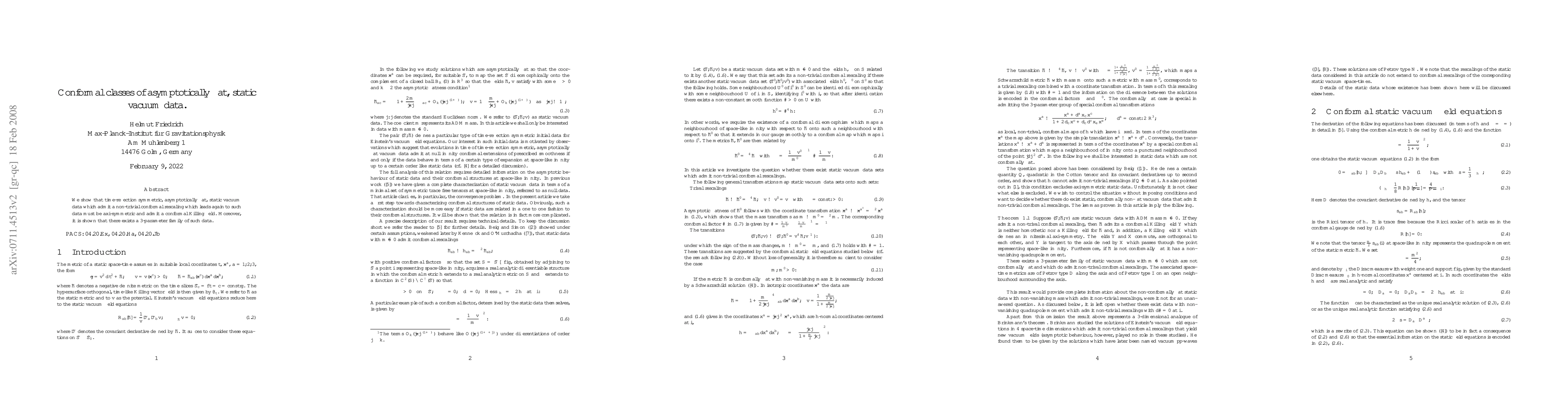 This paper demonstrates that asymptotically flat, static vacuum data with a non-trivial conformal rescaling that retains the same properties must be axi-symmetric and possess a conformal Killing field. It also reveals a 3-parameter family of such data configurations.