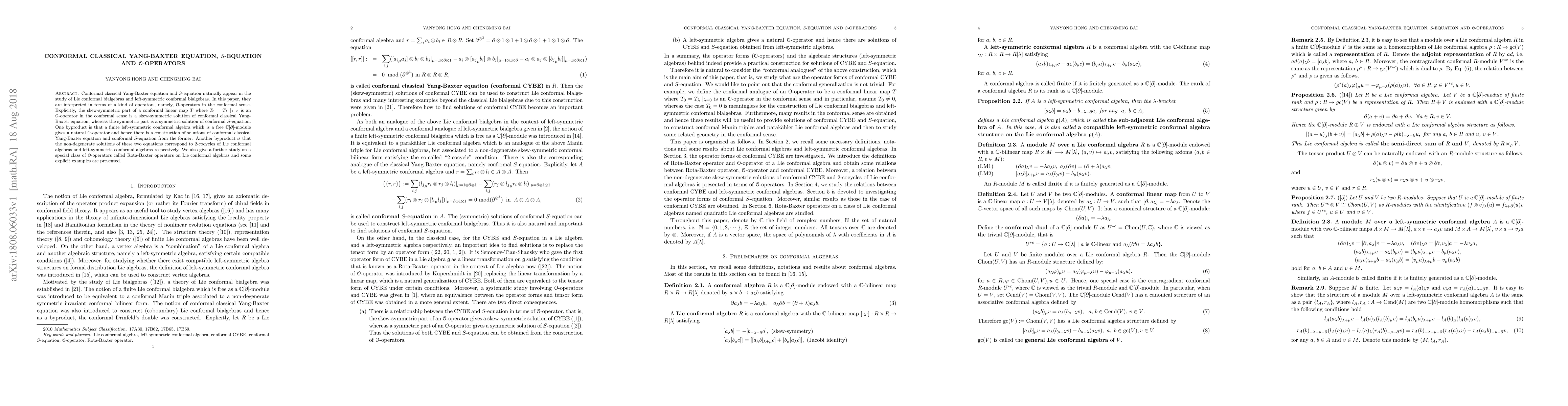 This paper explores the conformal classical Yang-Baxter equation and $S$-equation through the lens of $\mathcal{O}$-operators in conformal settings, showing how these operators yield solutions to both equations. It also connects finite left-symmetric conformal algebras to $\mathcal{O}$-operators and discusses the correspondence between non-degenerate solutions of these equations and 2-cocycles in related algebras.