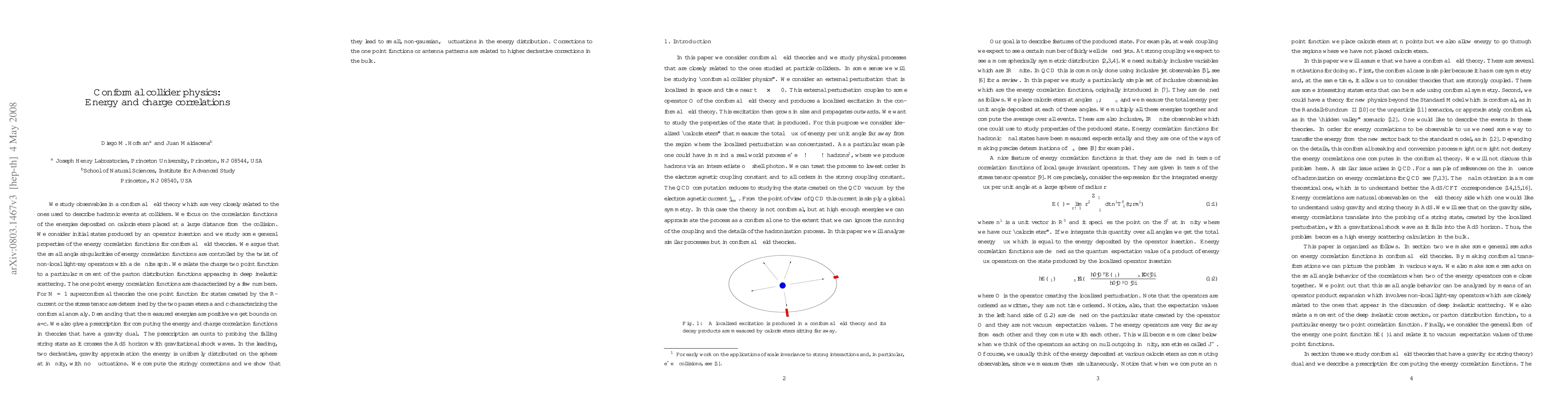 This paper explores energy and charge correlations in conformal field theories, drawing parallels to collider physics. It investigates the small-angle singularities in energy correlation functions and relates the charge two-point function to parton distribution functions. For ${\cal N}=1$ superconformal theories, it determines the one-point energy function using conformal anomaly parameters and derives bounds on their ratio. The study also provides a method for computing these functions in gravity dual theories, revealing uniform energy distribution with small, non-Gaussian fluctuations in stringy corrections.