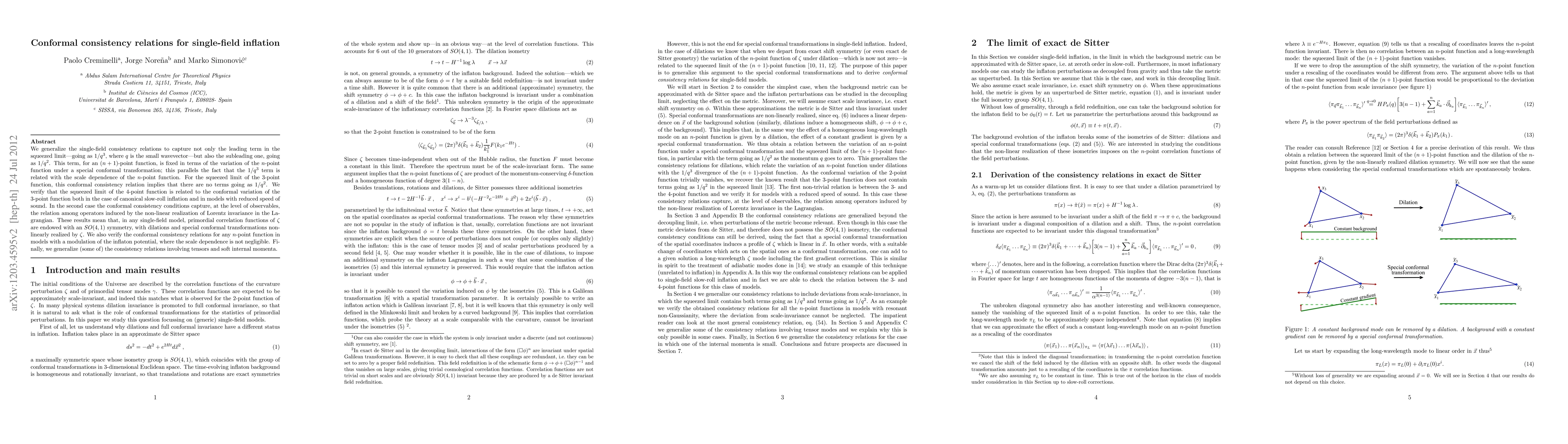 This paper generalizes single-field consistency relations for inflation to include subleading terms, revealing an SO(4,1) symmetry in primordial correlation functions of \zeta. It verifies these relations for various inflationary models, including those with reduced speed of sound and modulated inflaton potentials, and extends the findings to tensors and soft internal momenta.