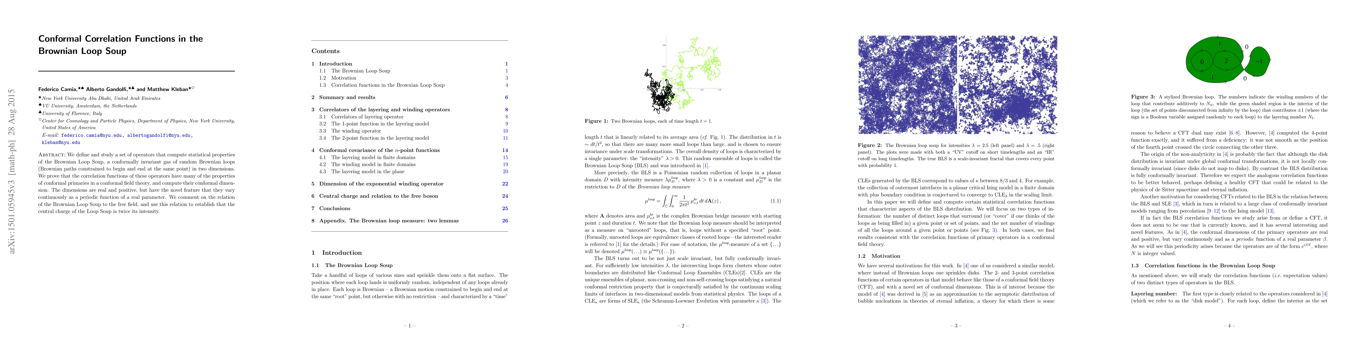 The work presents a novel approach to understanding the BLS through the lens of CFT, identifying continuously varying conformal dimensions and establishing a relationship between the BLS's central charge and its intensity, which differs from previous literature due to a specific normalization of the Brownian loop measure.