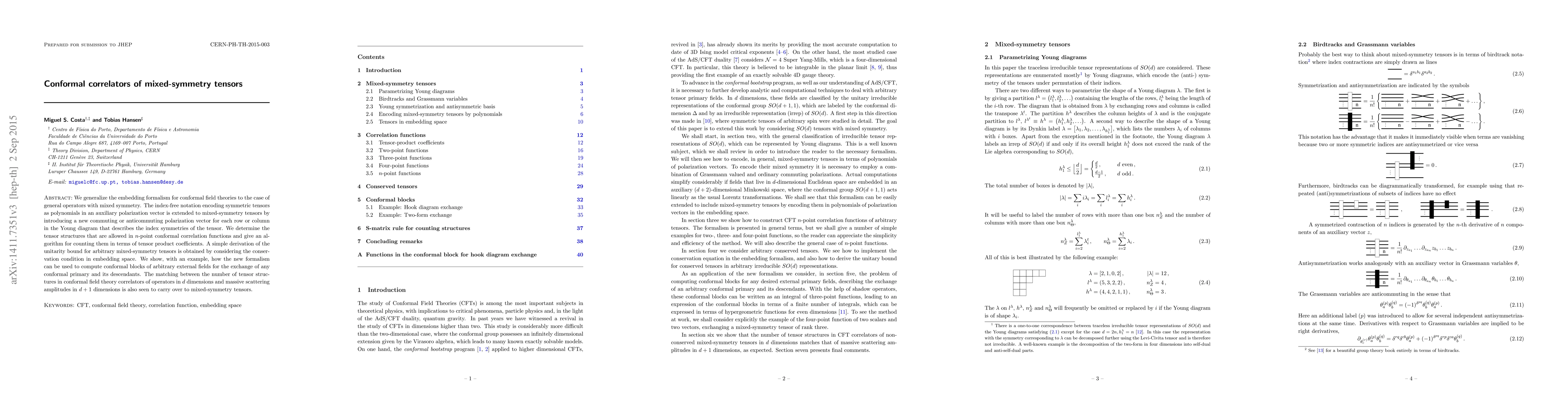 This paper extends the embedding formalism for conformal field theories to mixed-symmetry tensors, introducing a new polarization vector for each symmetry row or column, and provides an algorithm for counting tensor structures in n-point correlation functions, alongside a derivation of the unitarity bound. The method is exemplified through conformal blocks computation for mixed-symmetry tensors.
