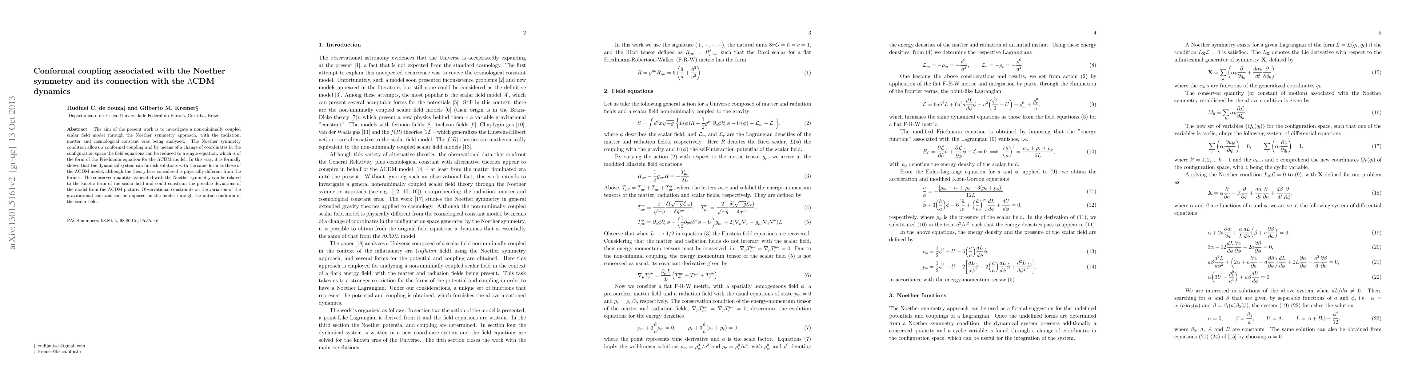 This paper explores a non-minimally coupled scalar field model using the Noether symmetry approach, demonstrating that it can yield solutions akin to the $\Lambda$CDM model despite being physically distinct. The study also links the conserved quantity from Noether symmetry to the scalar field's kinetic term and discusses observational constraints on the gravitational constant.