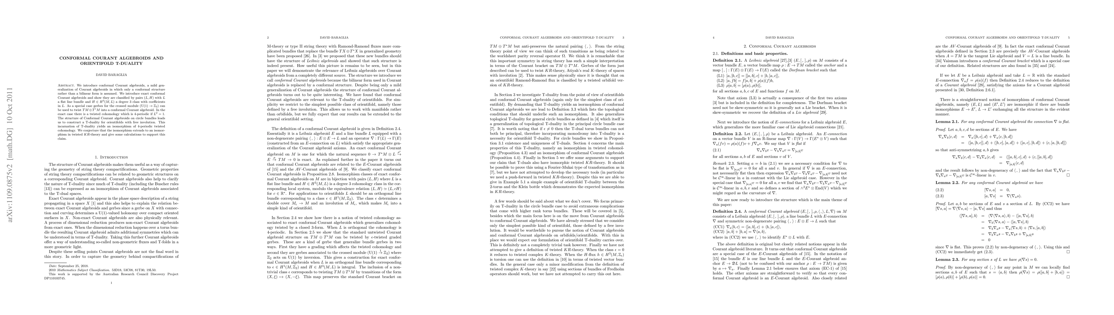 This paper introduces conformal Courant algebroids, a generalization of Courant algebroids, and establishes their classification through pairs involving flat line bundles and degree 3 cohomology classes. It further explores T-duality for orientifolds with free involution, proposing an isomorphism in 4-periodic twisted cohomology and supporting calculations for an extended isomorphism in twisted $KR$-theory.