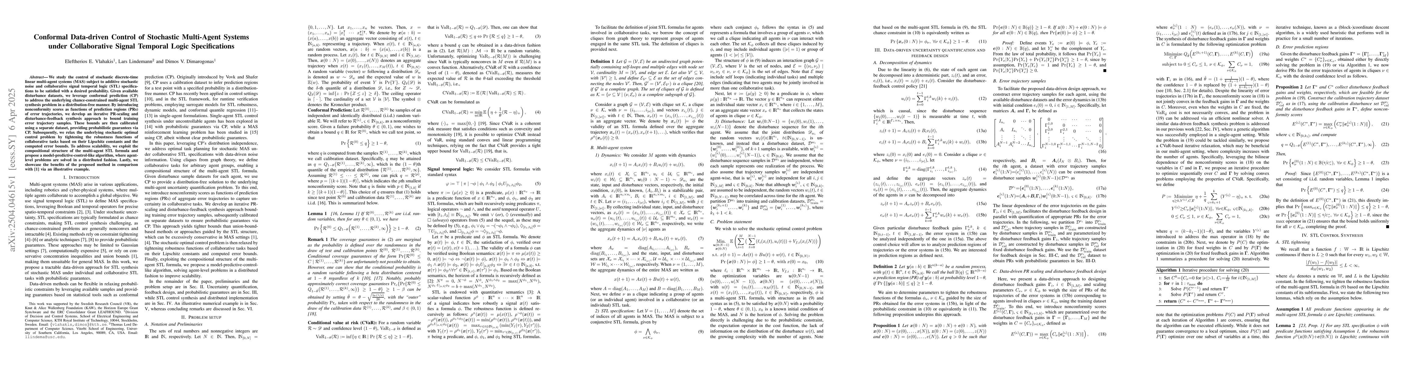 The paper introduces a conformal prediction-based approach for synthesizing controllers for stochastic multi-agent systems under collaborative STL specifications, ensuring probabilistic guarantees in a distribution-free manner.