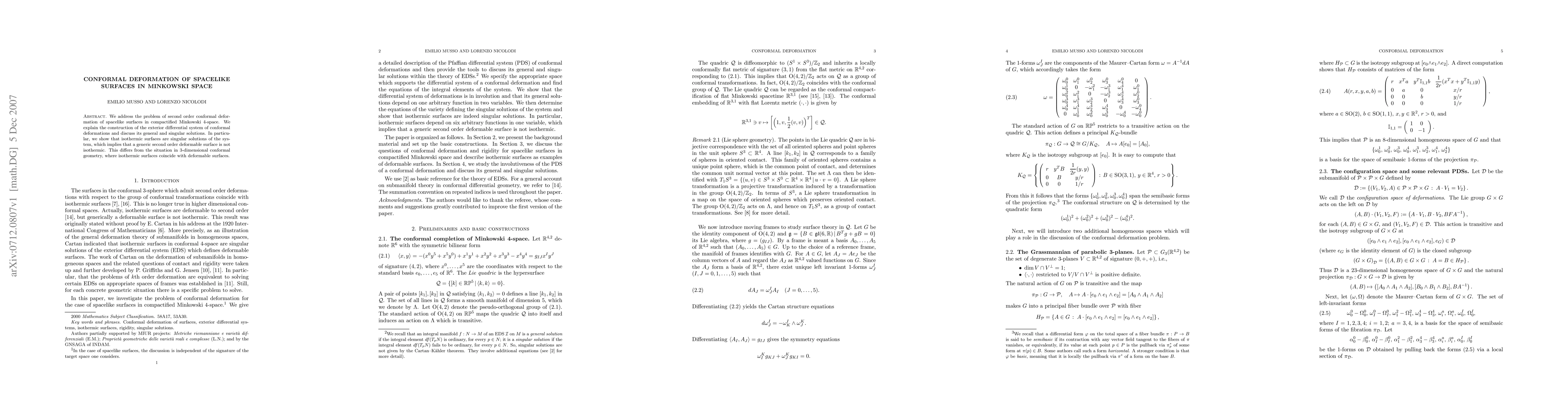 This paper investigates second-order conformal deformations of spacelike surfaces in Minkowski 4-space, constructing an exterior differential system for these deformations and identifying isothermic surfaces as singular solutions, indicating that most deformable surfaces are not isothermic, contrasting with 3D conformal geometry.