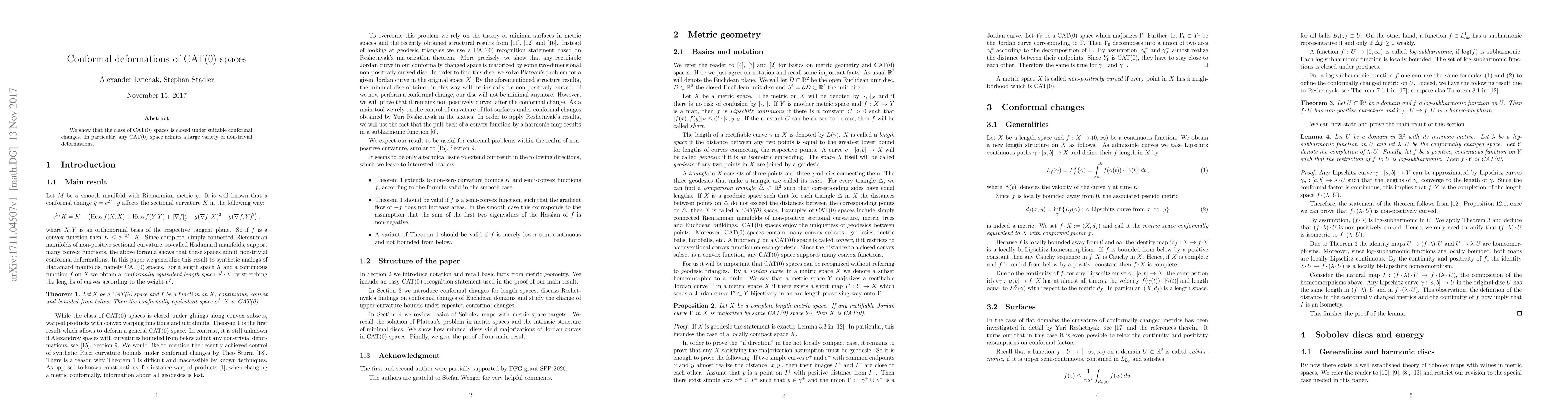 We show that the class of CAT(0) spaces is closed under suitable conformal changes. In particular, any CAT(0) space admits a large variety of non-trivial deformations.